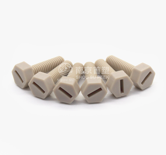 PEEK bolts can be formed in one time by mans of injection technology, in which the processing cost is low, and the price is superior. It is more corrosion resistant than metal screws, and featured with non-rusty property, light weight, high temperature resistant, excellent electrical performance, and irradiation resistance. Large inventory available all year round. Nanjing Shousu produces PEEK screws of the following specifications: